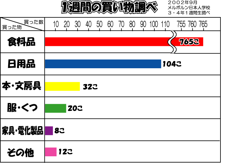 けん君のクラスでは、家の人たちの買い物について調べることにしました。
