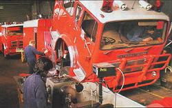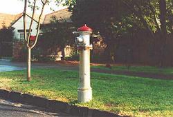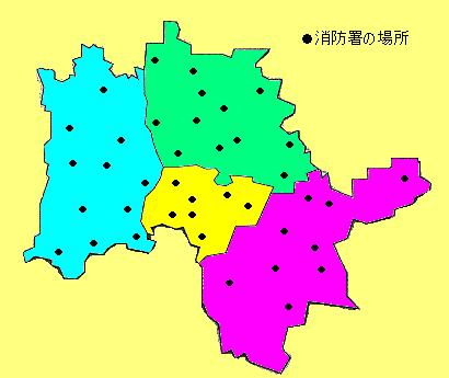 左の図のように、メルボルンには47か所のファイアーステイション(消防分署)があります。これは、市内のどこで火事がおきてもすぐ消防車が火事げん場にかけつけられるためです。