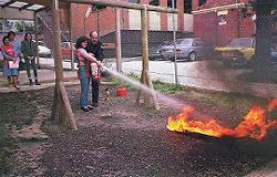 また、空気がかわいて火事がおこりやすい日には、テレビやラジオ、新聞で「トータルファイヤーバン」と知らせ、外で火をたくことを禁止します。しかしみんなが気をつけていても火事がおこることがあります。もし火事がおきたら、その時はできるだけはやく消さなければなりません。